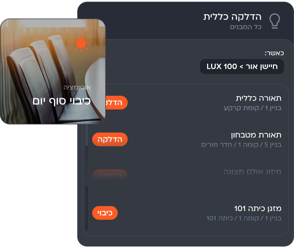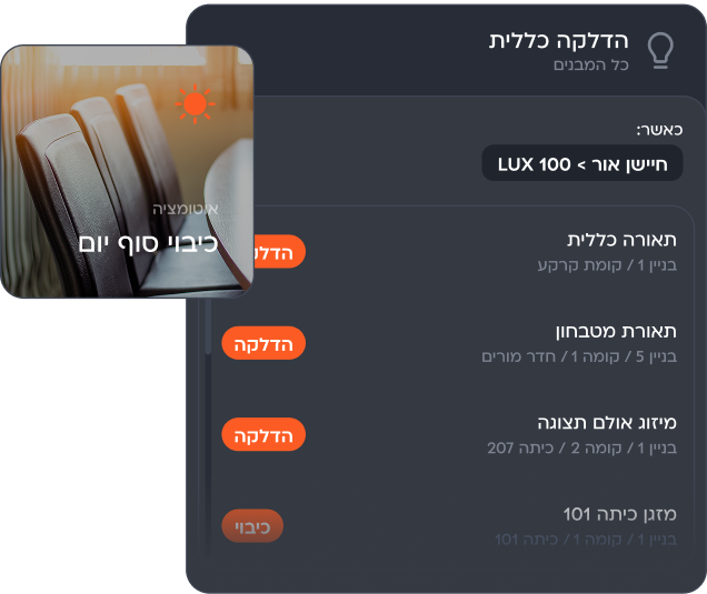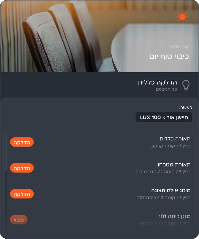 כיבוי אוטומטי באזורים לא מאוכלסים לצמצום צריכת אנרגיה מיותרת.